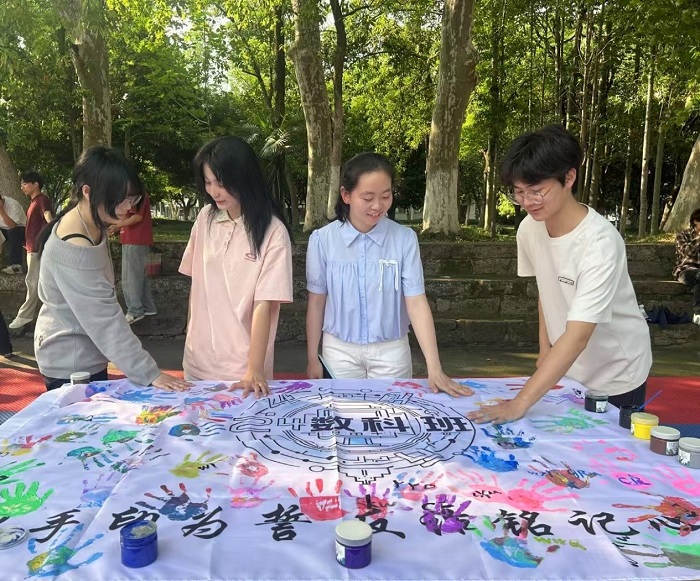 4月29日,24数科班举办“反诈同心,‘印’刻守护”反诈主题班徽DIY活动,同学们蘸取颜料在刻有反诈誓言的班旗上按下手印,以表抵制诈骗的决心。以新颖的DIY形式,激发同学们参与反诈宣传的积极性,提升反诈知晓度和普及率。
