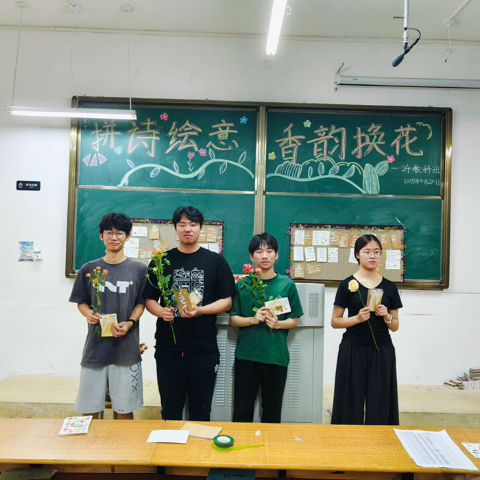 4月20日,24数科班开展“拼诗绘意,香韵换花”诗歌创作主题活动,同学们通过创作诗歌、以诗歌换花、分享创作心得来感受诗歌魅力,激发对诗歌的兴趣,培养创新思维和文学创作能力,营造出积极向上,充满诗意的班级文化氛围。