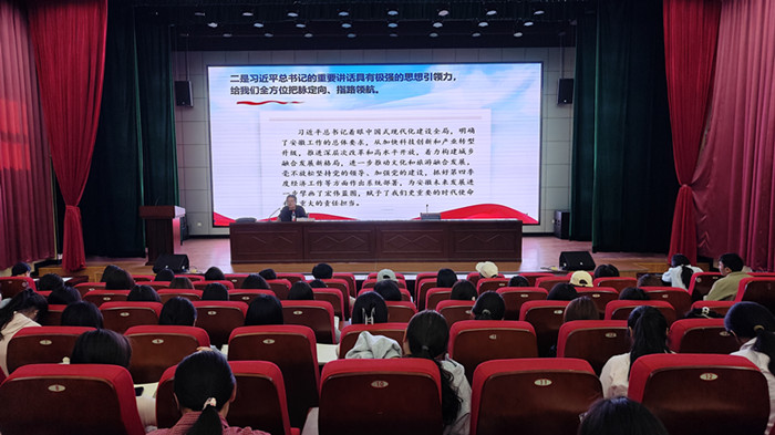 为深入学习贯彻全国两会精神,引导青年学子准确把握新时代发展要求,将个人成长与国家发展紧密相连,5月7日下午,横江校区“一站式”学生社区功能型党支部在多功能厅举办了2025年全国两会精神专题报告会,邀请马克思主义学院党总支书记刘春安担任主讲人,太阳集团tyc539MACAU和经济管理学院第63期入党积极分子及青马班学员共计300余人参加报告会。
