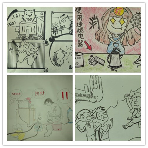 截止5月5日,共26幅作品参赛,同学们画风诙谐、想象丰富、内容多样,参选作品内容涉及了网络诈骗、校园网贷、校园用电安全、交通安全、消防安全等多个方面。经过评比,阮思佳荣获一等奖,李钰聪等三名同学获二等奖,张迎新等五名同学获三等奖。
