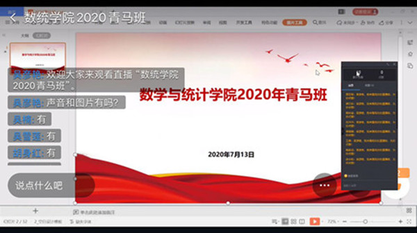 本次培训以钉钉直播方式开展,分为三讲,涵盖了学生干部能力培养、大学生实用礼仪、大学生入党程序及注意事项三个部分。第一讲由团总支负责人吴彦艳主讲,通过观看视频《〈中国有故事〉防疫专辑:青年突击队》激发学生大爱情怀,并结合视频重点就学生干部应该具备哪些素质和能力、当下如何做好学生干部进行了深入剖析。第二讲分别由辅导员袁晨晨主讲,她就大学生如何培养实用礼仪,与同学们进行了分享,指出礼仪是当代青年必备的素质,并着重强调了礼仪要从身边小事做起,一言一行皆要体现当代大学生的风采。第三讲由辅导员陈伟龙主讲,主要就同学们关心的入党问题进行了释疑解惑。