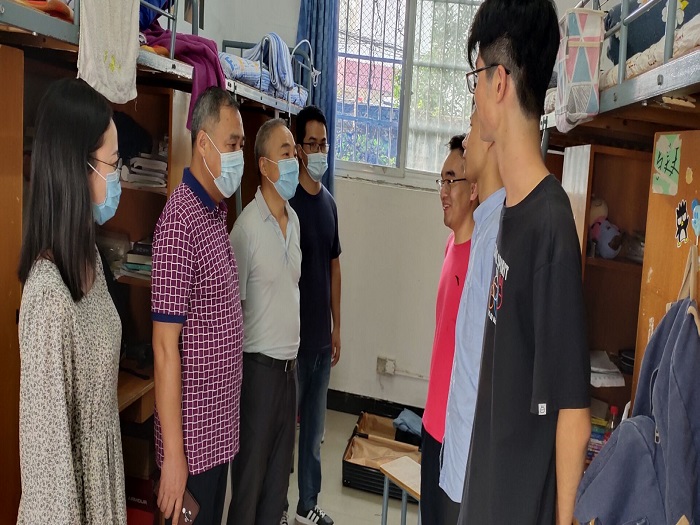 9月4日、7日下午,太阳集团tyc539MACAU党总支书记方继光、院长汪宏健及专职辅导员陈伟龙、袁晨晨深入2018级、2019级返校学生宿舍,了解学生返校后的生活情况。
