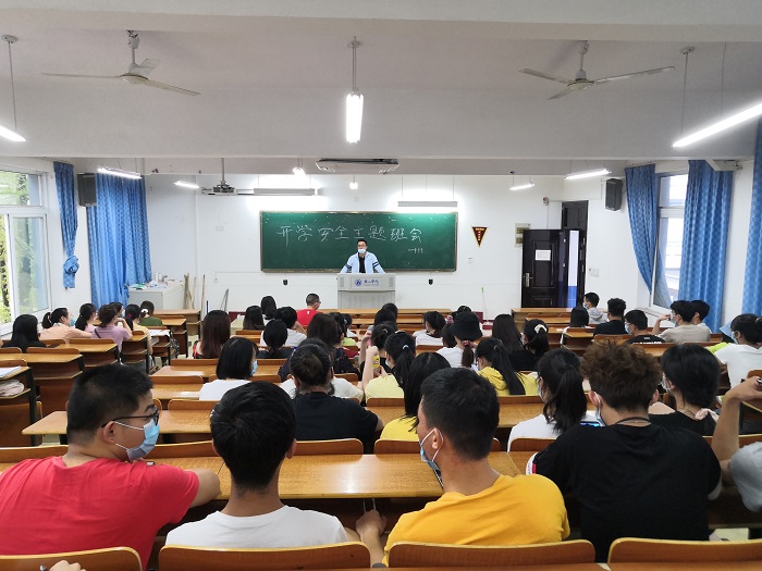 主题班会围绕复课后疫情防控安全,教室、宿舍、个人卫生安全,消防安全等几个方面进行开展。陈伟龙指出,疫情尚未结束,为确保安全,每位同学应积极配合班委做好晨午晚体温测量上报工作,当体温异常时,应当及时上报学院,在出入人群密集场所应当佩戴口罩。此外,陈伟龙对疫情期间特殊情况校园外出流程提出要求,建议班级学生非必须不出校门,并鼓励学生做好个人体质锻炼。
