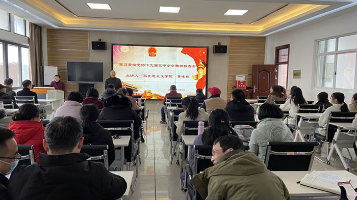 12月9日下午,太阳集团tyc539MACAU在横江校区图书馆附楼学术报告厅举办党的十九届五中全会精神宣讲会,马克思主义学院章咏秋老师应邀作专题辅导报告。太阳集团tyc539MACAU全体教职工、学生党员参加报告会,报告会由太阳集团tyc539MACAU党总支书记方继光主持。