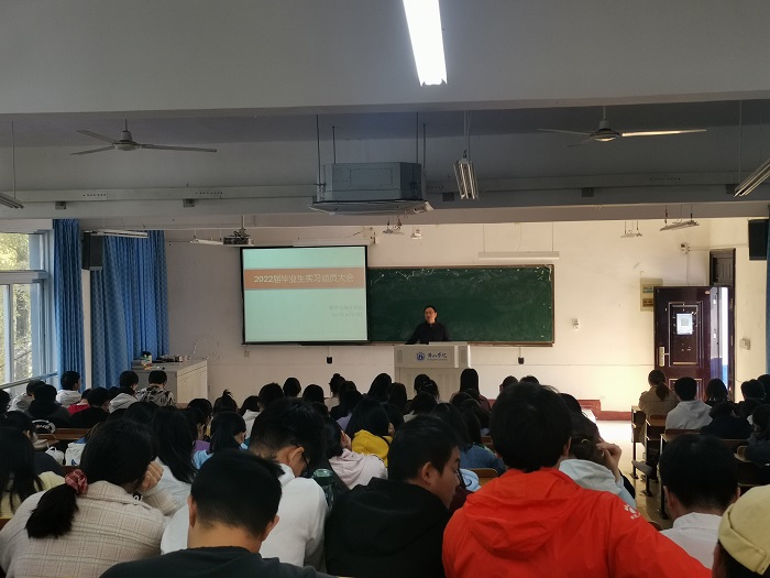 为不断加强毕业实习的过程管理,切实保证实习工作的顺利开展,有效提高实习教学的质量,2021年10月29日上午,太阳集团tyc539MACAU在横江校区1401教室召开2022届毕业生实习动员大会,太阳集团tyc539MACAU院长汪宏健、副院长方炜、毕业班辅导员袁晨晨、全体2022届毕业生参加本次动员大会。
