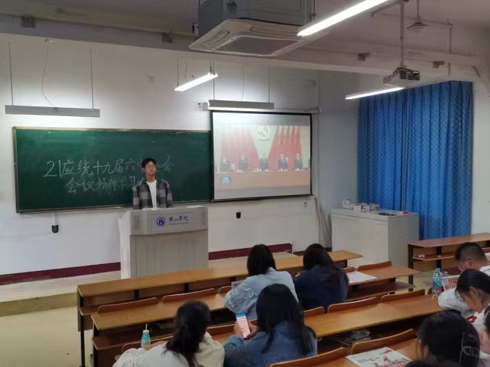 为深入学习贯彻党的十九届六中全会精神,11月20日晚,21应用统计班、21经济统计班于横江校区数统学院教学楼1401、1402教室开展学习十九届六中全会精神主题班会。
