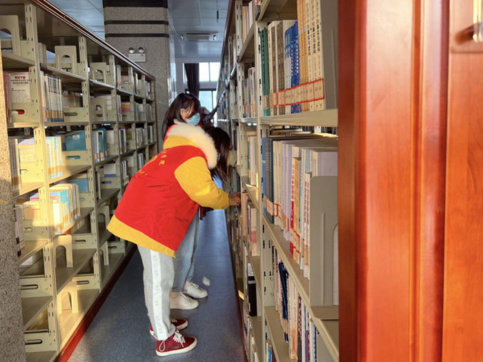 活动中,经过图书馆老师简单培训后,同学们分组行动,相互配合,各司其职,将凌乱的书籍按照要求重新整理摆放,志愿者们还将柜台上不同编号的图书按照类别找到对应的书架,将其归位,确保广大读者能高效便捷地查找借阅图书。