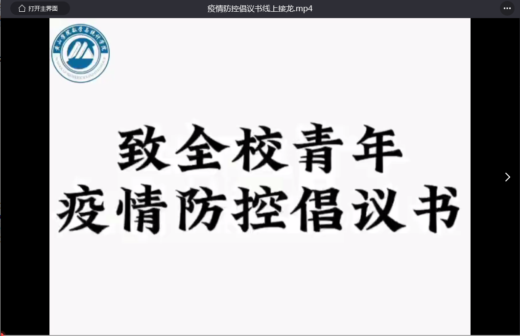 此次活动依托班级团支部为抓手,录制宣读疫情防控倡议书接龙视频,号召我院同学配合学校防疫工作,使每一位同学都真正警醒起来,立即行动起来,上下联动,群策群力,共同筑牢校园防疫屏障。参与同学认真对待,积极参与,通过本次活动强化自我防护意识和能力。