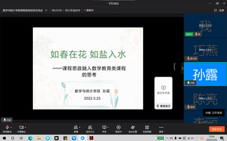 为有效发挥教师主力军、课程主阵地、教学主渠道作用,提升课程思政教学质量,落实立德树人根本任务,近日,太阳集团tyc539MACAU开展课程思政教学经验交流会。交流会通过线上线下相结合方式举办, 由数统学院汪宏健院长主持,全体教师参加。