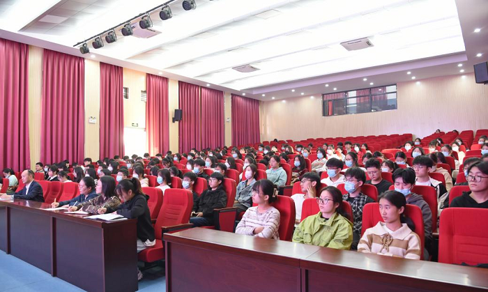 汪良发结合自己几十年持续不断读书的经历从“党史是人生最好的教科书,学好党史是大学生的必修课;世界读书日、全民阅读和首届全民阅读大会的情况;读书的意义和价值;古徽州热爱读书的优秀传统;青年大学生要多读书、读好书、善读书”五个方面全面阐释并回答了学党史的重要意义,为什么要读书,读什么书以及怎样读书的重大问题。这些问题与青年学子的成长成才密切相关。汪良发特别指出青年大学生要处理好精读和泛读的关系、学习与思考的关系、纸质书阅读与网络阅读的关系、知与行、理论与实践的关系。精彩的报告赢得师生阵阵掌声。