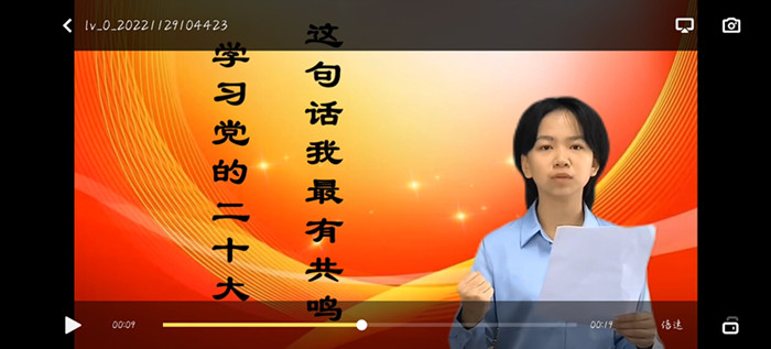 在视频中,青年代表紧紧围绕党的二十大报告中自己最有共鸣的一句话谈认识、讲体会、话实践,争做学懂弄通做实习近平新时代中国特色社会主义思想的排头兵。