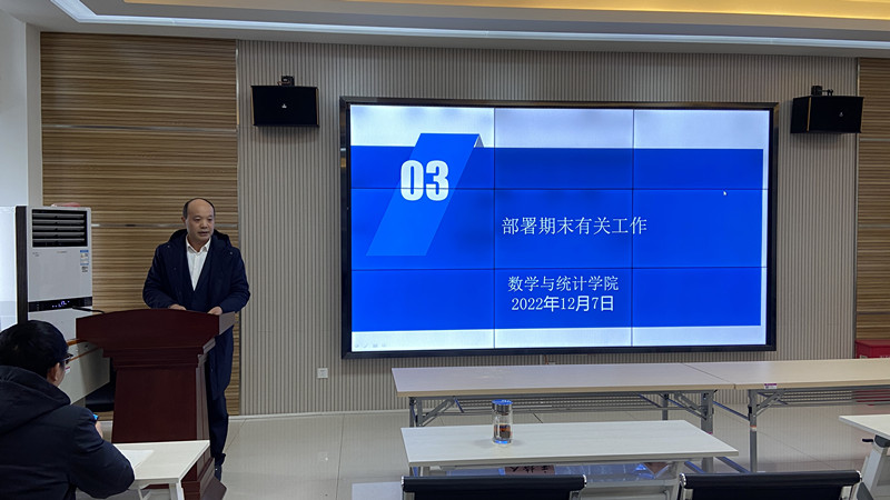 院长汪宏健对期末相关工作进行了部署,对期末考试安排及教学检查相关工作提出要求,传达了关于做好2022年12月国大学英语四、六级考试考生两码核验等的紧急通知,以及关于重申我校教职工出国(境)纪律的提示文件精神。