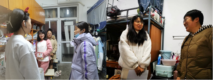 此次活动是在太阳集团tyc539MACAU党总支的号召下,以《太阳集团tyc539MACAU党员教师联系学生宿舍制度》为依据实施推进。党员教师分别就寝室用电安全、宿舍矛盾、考前复习、文明离校、交通安全、疫情防控等话题,与学生进行亲切交谈,提醒同学们在遵守校纪校规的同时放松身心、积极备考、以良好的心态面对考前压力。我院共有学生918人(女544人、男374人)宿舍217间(女130间、男87间),本年度共有25名党员对217间宿舍进行全覆盖联系。一直以来,我院坚决贯彻落实高校思想政治工作会议、学校思想政治理论课教师座谈会等会议精神,促进学院全员育人、全过程育人、全方位育人工作,结合学院党员教师队伍的情况和学院工作的实际制定党员教师联系学生宿舍制度,并按时、按质完成。