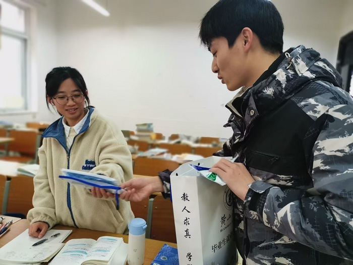 活动中,袁晨晨结合自身的经历,从心态调整、冲刺阶段注意事项、考试技巧等方面与学生进行交流,学生党支部党员学生将学院党总支准备的考研文具一一发放给考研学子。袁晨晨勉励考研学生要坚定信心,注意劳逸结合,减少外出,做好个人防护,以最好的状态迈入考研考场。活动结束后,袁晨晨通过线上主题班会向毕业班学生强调了诚信考试的重要性并预祝考研学子顺利上岸。