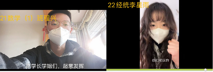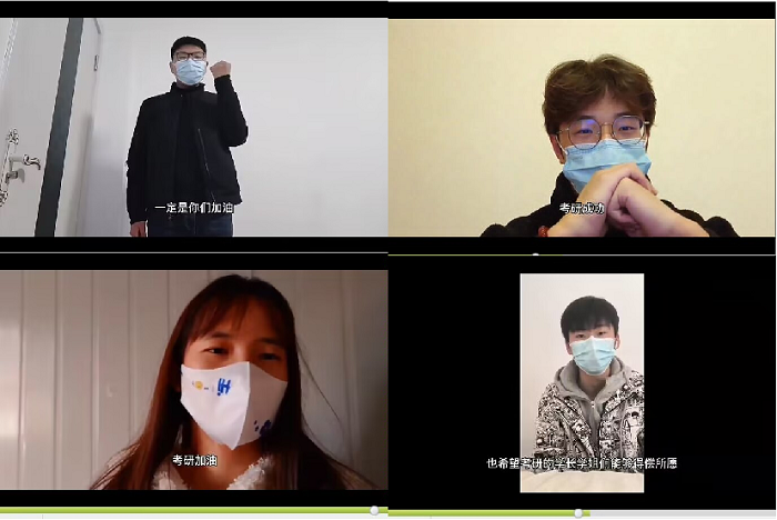同学们通过录制祝福视频参与活动,学院易班工作站成员将视频整合、编辑,依托学院微社区及时发布。与此同时,通过轻应用的制作,让同学们写下祝福的话语,活动形式暖心且多彩。“道阻且长,行则将至”数学与应用数学专业2022(2)班黄浩为考研的学长学姐送上真挚的祝福,他说:“考研是开往春天的高铁,成功属于你们,一定是你们!”