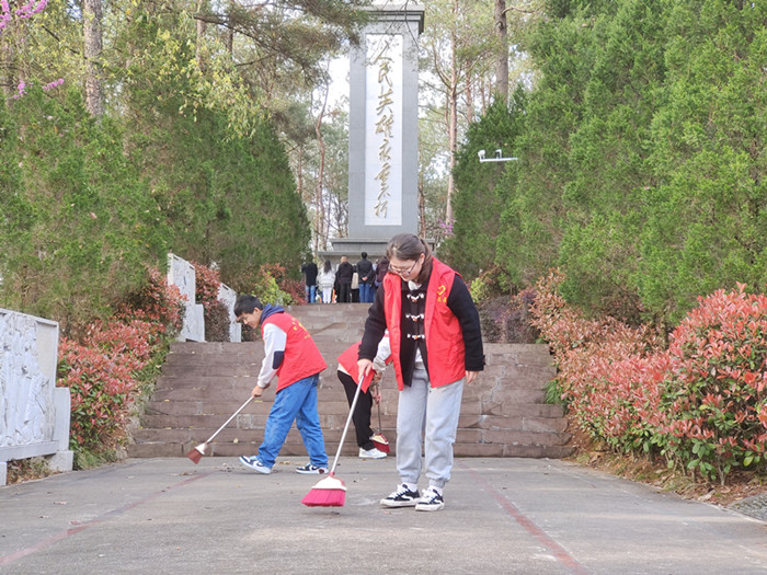 怀着对逝者的无限追思,同学们对烈士陵园的台阶、道路进行清扫,并将碑文擦拭干净。在高耸的纪念碑前,同学们整齐列队,神情肃穆,齐唱国歌,向革命烈士敬献鲜花并默哀三分钟,向革命先烈致以最深切的悼念和最崇高的敬意,深切缅怀烈士的光辉业绩,追思他的崇高革命精神,随后,在烈士纪念碑前重温入团誓言,在学生代表方佳怡介绍了烈士们的英勇事迹后,同学们纷纷表示要铭记和颂扬革命先烈的事迹,继承先烈遗志,努力学习,自律自强,为推进中华民族伟大复兴贡献力量。团委老师勉励同学们要铭记历史,珍惜时光,奋发图强,脚踏实地,埋头苦学,用实际行动继承先烈光荣传统,发扬前辈爱国精神,用优异的成绩回报祖国,回报社会。最后,活动在催人奋进的团歌声中结束。