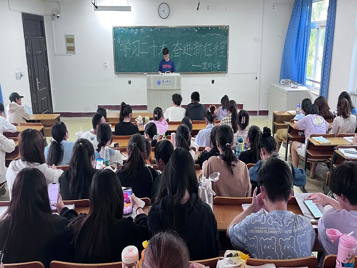 5月6日下午,2022级经济统计班在1503教室举办“学习二十大,奋进新征程”主题宣讲活动,活动由2022级经济统计班易班班长李星雨主持。