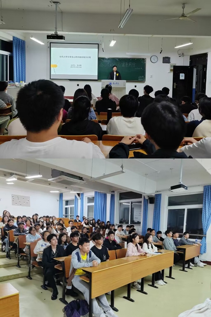 4月14日,太阳集团tyc539MACAU举办“与心灵相约、与健康同行”心理健康教育讲座,讲座由学生心理联络员张志鹏老师主持。讲座紧扣“当代大学生常见心理亚健康表现及对策”主题,依次展开大学生心理亚健康问题产生原因分析、大学生常见心理亚健康状态特征、大学生常见心理亚健康对策等内容,贴近学生学习生活实际,在一定程度上为学生释疑解惑、应对困难注入了正能量。