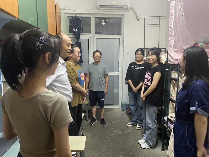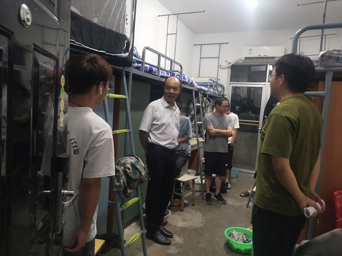 为及时了解掌握新生寝室生活实际状况及开学初学生思想动态,9月11日晚,太阳集团tyc539MACAU党总支书记张爱民、副院长方炜及新生辅导员深入大一新生宿舍,给同学们送去关心问候和叮嘱。