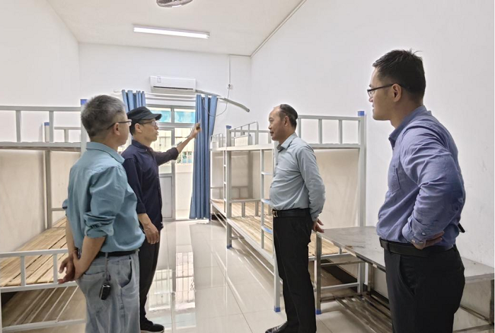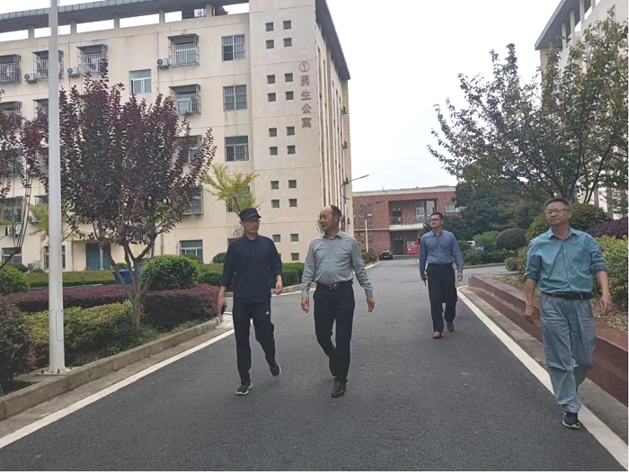 张爱民一行对宣城市信息工程学校进行了参观考察,实地察看了实习学生的食宿安排、实习办公场所,并就安全管理等问题进行了交流。