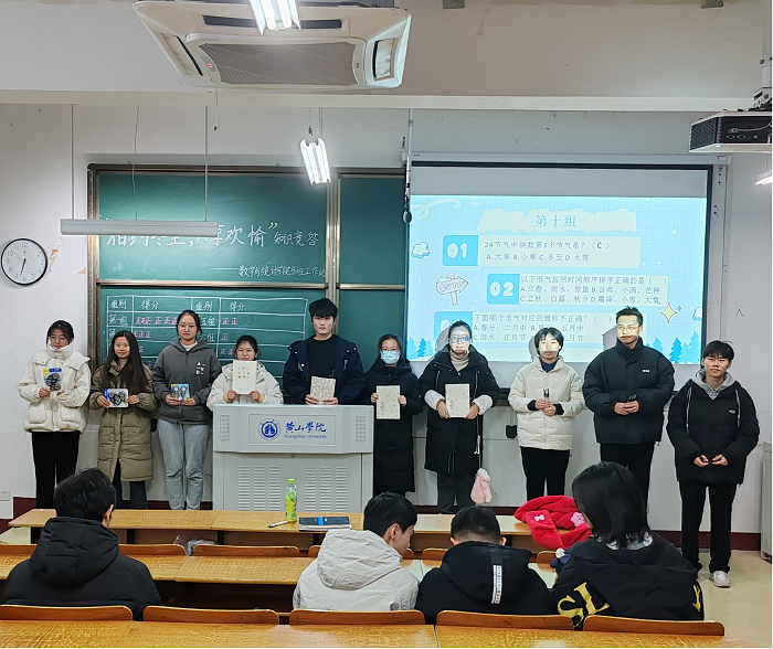 比赛中将所有同学分为七组,经过激烈的竞赛角逐,第一组获得一等奖,第四组和第七组分别获得二等奖和三等奖。2023级经济统计班的王蓉同学也参与了此次活动,她说:“我觉得这次竞赛非常有意义!它让我了解了更多关于二十四节气的知识,在考试前期参加此次活动让我感到心情很放松,也更加有信心面对即将到来的期末考试了。”