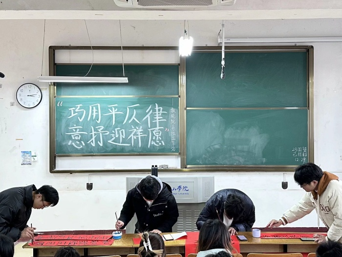 年终将至,年味渐浓。活动现场墨香四溢、气氛格外热烈。此次活动的举办,不仅传递了新年的祝福,还是对中华传统习俗的传承。参加活动的杨阳同学说到:“借着学院易班工作站此次有新意的新年活动,我重新开始了写毛笔字的小爱好,活动过程感觉温暖且美好,让我感受到了浓浓的年味。”