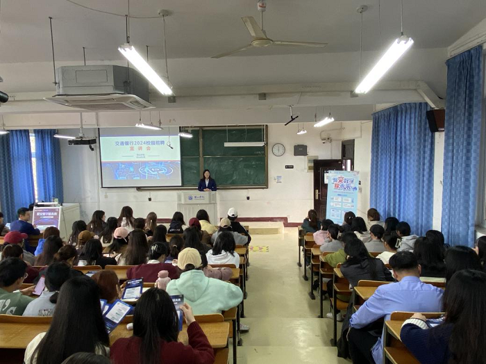 3月27日下午,太阳集团tyc539MACAU邀请交通银行黄山分行和中通供应链管理有限公司进行专场招聘宣讲,宣讲会在横江校区1401教室举办,2020级全体在校毕业生及2021级部分学生参加招聘会。