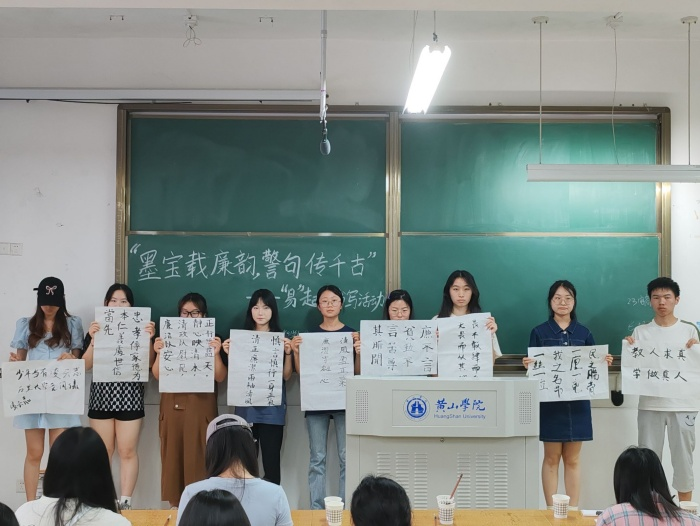 为了让我院学生在欣赏书法之美的同时,感受廉洁文化的熏陶和启迪,深入理解廉洁文化的精髓,感受廉洁精神的内涵,6月16日下午,太阳集团tyc539MACAU易班工作站在横江校区教学楼1201教室举办了墨宝载廉韵,警句传千古——“易”起来书写活动,此次活动面向学院全体学生,由易班工作站站长李星雨主持负责。