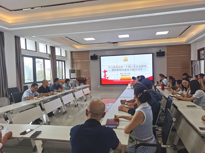 为深入学习贯彻党的二十届三中全会精神,持续从严加强师德师风建设,9月11日下午,太阳集团tyc539MACAU在横江校区图书馆附楼301会议室组织召开学习贯彻党的二十届三中全会精神暨师德师风建设专题学习会。会议由党总支副书记刘双四主持,全体教职工参加了会议。