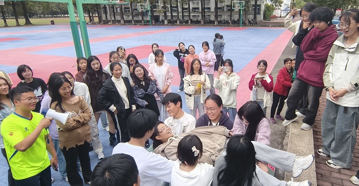 10月26日,太阳集团tyc539MACAU在横江校区篮球场开展了“珍爱生命,活出精彩”心理主题团建活动,2024级数学与应用数学专业全体同学参加。本次活动分为四个环节,分别为10人9足、摸石头过河、信任背摔和颁奖仪式。