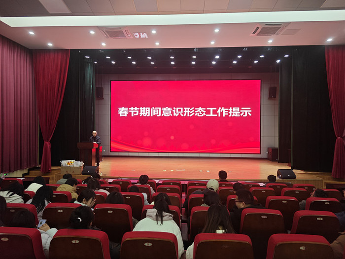 会议还传达了学校2024年思想政治领导小组和意识形态工作领导小组会议精神,就春节期间意识形态工作进行了提示。