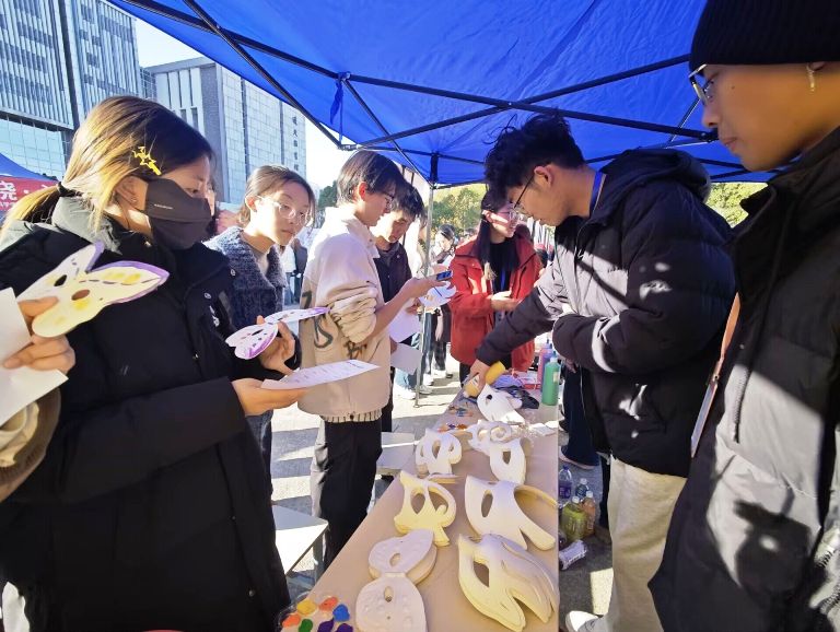 11月26日下午,太阳集团tyc539MACAU心理辅导站在太阳成集团tyc539逸夫图书馆门口成功举办“绘心绘面,悦己悦心”素胚面具心理活动。本次活动以艺术疗愈为核心,形式新颖独特,创意十足,迅速成为校园心理一条街中最受欢迎的打卡点之一。