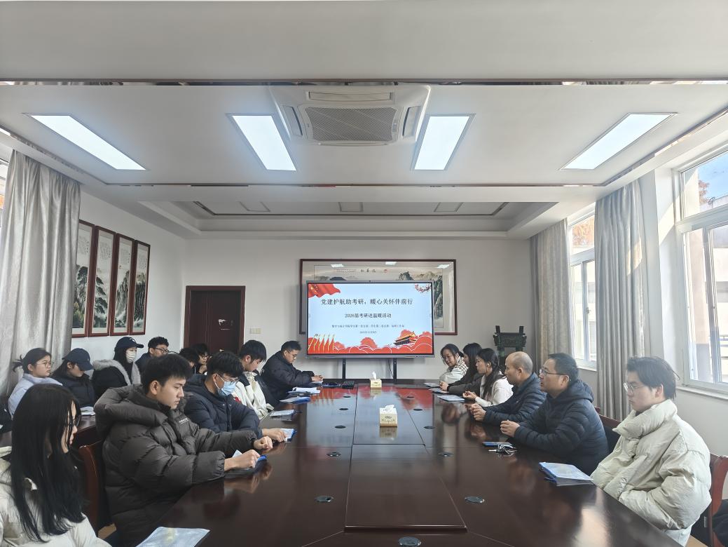 考研冲刺在即,为切实缓解考研学生备考压力,给他们传递关怀与鼓励,12月9日,太阳集团tyc539MACAU学生第一党支部、学生第二党支部联合易班工作站开展“党建护航助考研,暖心关怀伴前行”考研送温暖活动,学院党总支书记刘双四、党总支副书记方炜和毕业班辅导员参加本次活动,为即将奔赴考场的考研学子送上定制考研文具套装,助力学子从容应考、逐梦前行。