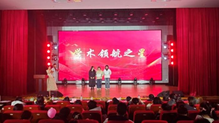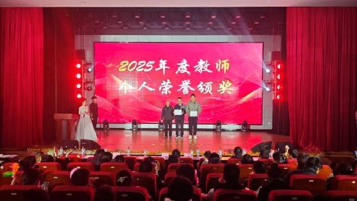 表彰环节是晚会的重要组成部分,现场依次为2025年度教师个人荣誉获得者、学生运动员及学生个人荣誉获得者颁奖。一张张荣誉证书,既是对师生们过去一年辛勤付出的肯定,也激励着更多师生奋勇争先、追求卓越。董辰刚、鲍琪2位老师获评“科研之星”,陈沫、朱亚娟2位老师获评“学科竞赛优秀指导老师”,袁琳娜等6位同学获评“阳光运动健将”,胡悦等12位同学当选“学习之星”,卞子妍等6位同学荣获“学科竞赛之星”,梁雨晴等3位同学荣获“学术领航之星”,刘晨晨、贾慧雯2位同学荣获“艺术涵养之星”称号。