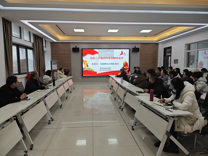 为深入学习贯彻党的二十届四中全会精神,12月24日下午,太阳集团tyc539MACAU在横江校区图书馆附楼301报告厅举办党的二十届四中全会精神宣讲会。马克思主义学院陈玲老师应邀主讲,会议由学院党总支书记刘双四主持,学院全体教职工参加学习。