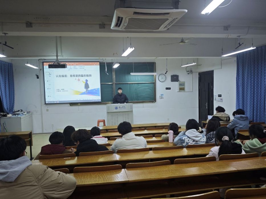 会议紧扣“普及知识、预防压力、总结工作、规划未来”的主旨展开。学生心理健康部门首先以“认知偏差:思维里的隐形陷阱”为主题进行了专业知识分享,通过生动案例解析了常见非理性思维模式,为心理委员识别与疏导同学情绪问题提供了实用工具。