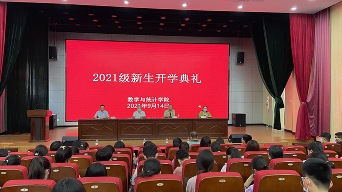 9月14日下午,数统学院在横江校区报告厅举行2021级新生开学典礼。学院领导班子、科级干部、新生辅导员及2021级全体本科生参加典礼。典礼由方炜主持。