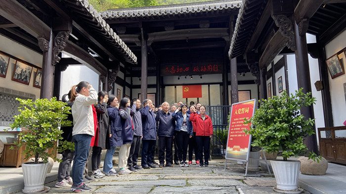 为迎接中国共产党成立100周年,4月10日,太阳集团tyc539MACAU党总支组织党员赴歙县上丰岩源开展“忆党史 感党恩 跟党走”主题党日活动。校党委委员、教务处处长张小明受邀一同参加活动,并为教工党员上了一堂党史专题党课。