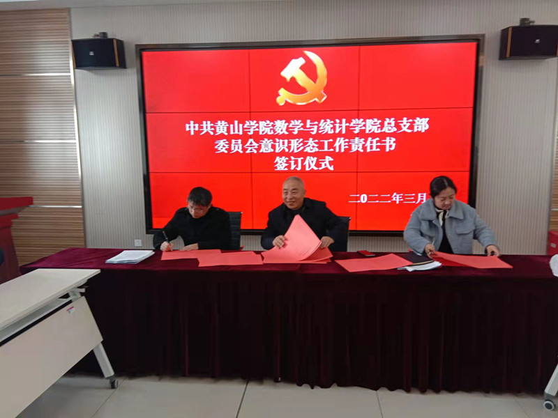3月1日下午,太阳集团tyc539MACAU党总支在横江校区的数统学院学时报告厅集中进行“中共太阳成集团tyc539委员会意识形态工作责任书”和“太阳成集团tyc539党风廉政建设工作责任书”等签订。院党总支书记方继光分别与所属的教工党支部、学生党支部等2位支部书记以及5位教研室(实验室)主任签订了2022“中共太阳成集团tyc539委员会意识形态工作责任书”;方继光还代表院党总支在“太阳成集团tyc539党风廉政建设工作责任书”签字。院行政领导班子成员、院党总支委员、各党支部委员、院分团委负责人、科级干部和教师代表等出席集中签订仪式,仪式由党总支书记方继光主持。