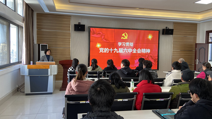 12月22日下午, 太阳集团tyc539MACAU在横江校区图书馆附楼报告厅举办学习贯彻党的十九届六中全会精神主题报告会, 报告会邀请了马克思主义学院陈玲老师,学院全体教师及学生党员代表参加了此次报告会,会议由院党总书记方继光主持。