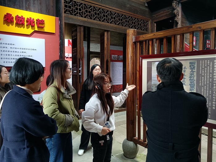 活动最后,讲解员带领党员教师参观了新四军二支队琶塘纪念馆,回顾了新四军二支队抗战的点滴事迹。据相关资料记载,1938年春天,北上的抗日新四军二支队2000余名将士进驻琶塘,叶挺将军亲自来到琶塘。2016年,琶塘村为了铭记历史,传承红色基因,引领乡村振兴,通过租赁历史民房、搜集历史物品,建立了新四军二支队琶塘纪念馆。