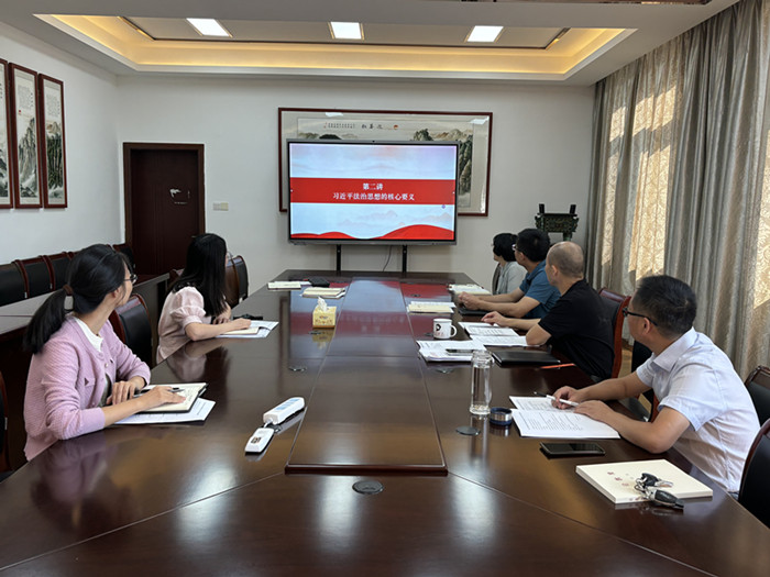 党总支副书记刘双四领学习近平总书记在党的二十届三中全会第二次全体会议上的讲话;院长、党总支宣传委员胡建伟领学习近平同志《论教育》;党总支副书记方炜领学《习近平关于人才工作论述摘编》;会议还学习了习近平总书记在全国教育大会上重要讲话精神,并观看了《习近平法治思想的核心要义》学习视频。党总支青年委员袁晨晨紧扣学习内容、结合自身学习感悟和工作实际进行了交流发言。